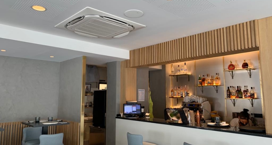 Le climatiseur cassette est encastré dans le plafond,et seule la grille d’aération reste apparente. Il se caractérise par ses 4 sorties d’air,ce qui permet de rafraichir les grandes pièces de façon uniforme.